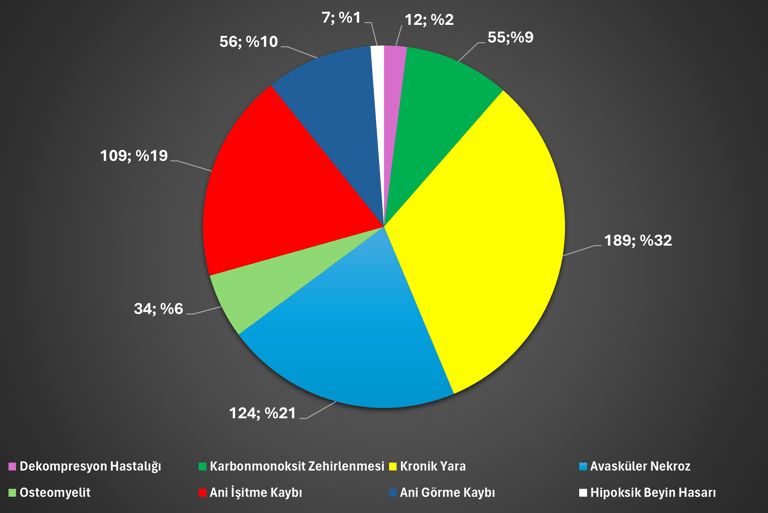2025 yılında toplam 586 hastaya hiperbarik oksijen tedavisi hizmeti sunduk.
